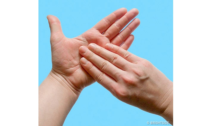 হাতের তালু : আপনার এক হাতের তালুর মাঝখানে অন্য হাতের আঙুল দিয়ে চাপ দিয়ে ধীরে ধীরে ঘুরিয়ে ম্যাসাজ করতে থাকুন এবং গভীরভাবে তিনবার শ্বাস নিয়ে শ্বাস ছাড়ুন। রিফ্লেক্সোলজিস্টদের মতে, হাতের তালুর মধ্যখানটা হচ্ছে, আপনার অনুভূতি এবং আবেগগুলোর কেন্দ্র। গবেষণায় দেখা গেছে, হাতের তালুতে নিয়মিত এই ম্যাসাজ স্ট্রেস, বমি ভাব, ডায়রিয়া এবং কোষ্ঠকাঠিন্য প্রতিরোধে সহায়তা করে।