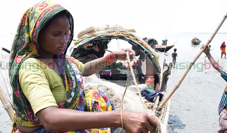 নৌকার পেছনে নারী বৈঠা ধরে আছেন, আর নৌকার গলুইয়ে খেলছে শিশুরা। নৌকা চলছে কখনো মাছ ধরার উদ্দেশ্যে, আবার কখনো কিনার পানে। এমন দৃশ্য উপকূলের বিভিন্ন এলাকায় চোখে পড়ে। বহু নারী সংসারের চালিকা শক্তি। পুরুষ নেই, অথবা থাকলেও নামেমাত্র। রোজগারের তাগিদে দিনরাত পরিশ্রম, এরপর রান্নাবান্না, সন্তান লালন-পালন, আসবাবপত্র গোছানো ইত্যাদি সব কাজ করেন জেলে নারী। তবুও আশায় বুক বাঁধেন- হয়তো ফিরবে সুদিন। কিন্তু সুদিনের দেখা মেলে না।
