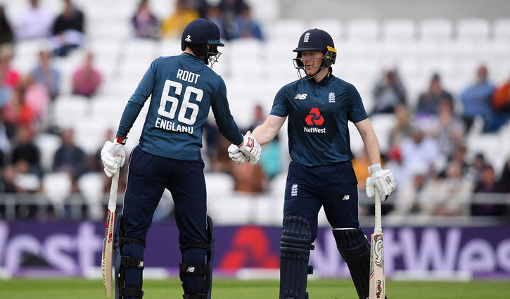 এর আগে ব্যাটিংয়ে নেমে জো রুটের ৮৪, মরগ্যানের ৭৬ রানে রানের পাহাড়ে উঠে ইংল্যান্ড। শুরুতে উদ্বোধনী জুটিতে ৬৩ রানের জুটি গড়েন জেমস ভিঞ্চ ও জনি বেয়ারস্টো। ভিঞ্চ ৩৩ ও বেয়ারস্টো ৩২ রান করেন। রুট ৭৩ বলে ৯ চারে সাজান ৮৪ রানের ইনিংসটি। মরগ্যান ৬৪ বলে ৫ ছক্কা ও ৪ চারে করেন ৭৬ রান। উইকেট রক্ষক ব্যাটসম্যান বাটলারও পেয়েছেন রান। ডানহাতি ব্যাটসম্যান ৩৪ বলে করেন ৩৪ রান।