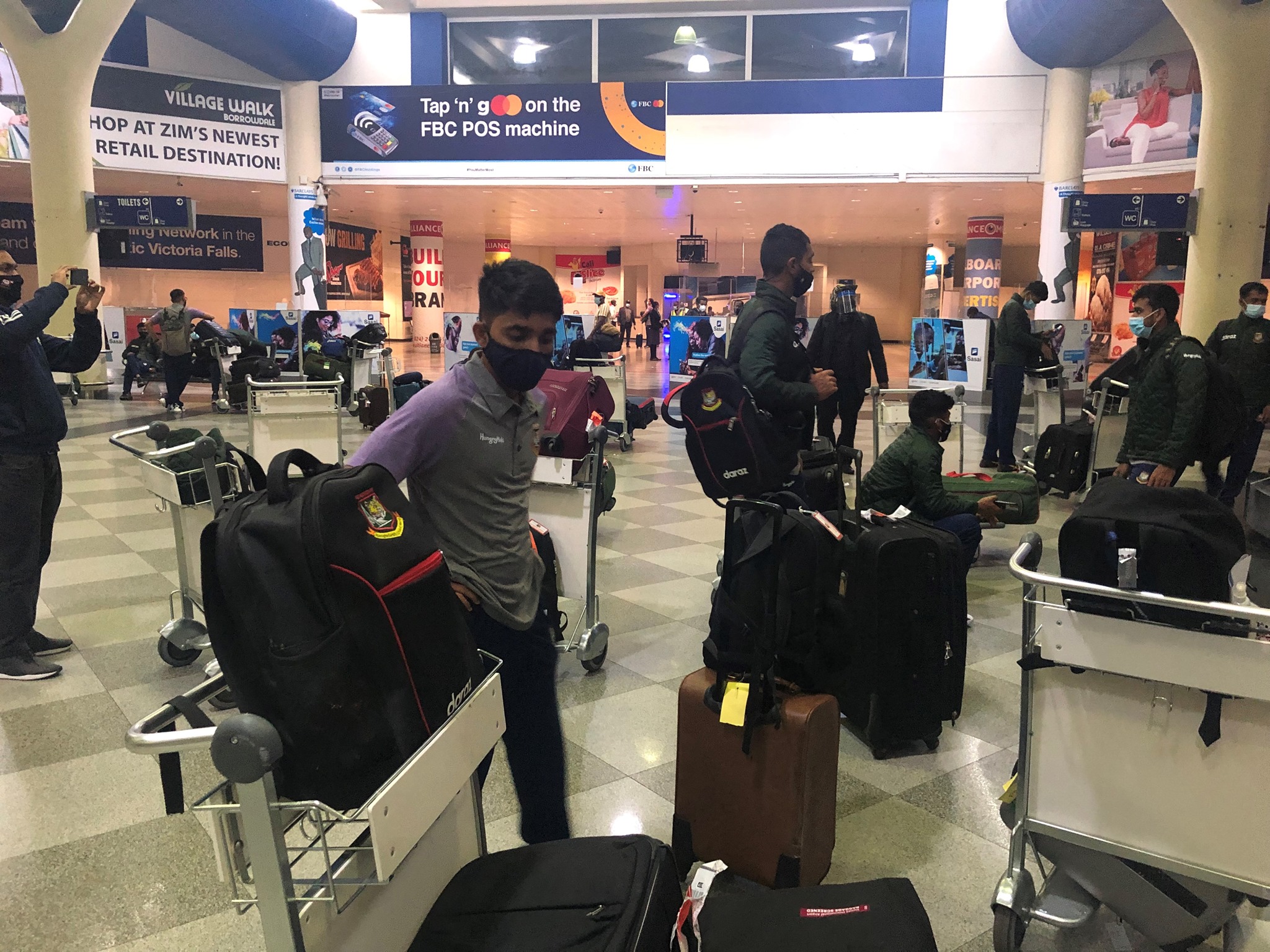 মঙ্গলবার (২৯ জুন) স্থানীয় সময় রাত ৯টা ২০ ও বাংলাদেশ সময় রাত ২টা ২০ মিনিটে হারারেতে পা রাখে মুমিনুল হকের দল। বিমানবন্দরে নামার পরই সবার কোভিড টেস্ট করানো হয়।