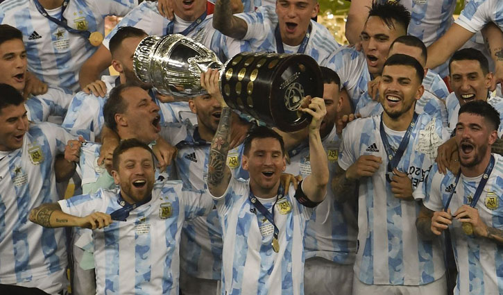 বহু হা-হুতাশের পর এলো আকাঙ্ক্ষিত আন্তর্জাতিক ট্রফি। আর্জেন্টিনার ২৮ বছরের ট্রফি খরা ঘুচিয়ে দিলেন লিওনেল মেসি। আন্তর্জাতিক ক্যারিয়ারের প্রথম শিরোপা। এই অনুভূতি বলে বোঝানোর নয়, ম্যাচ শেষে বলেছেন আর্জেন্টিনা অধিনায়ক। ব্রাজিলের বিপক্ষে মারাকানায় কোপা আমেরিকা ফাইনালের শেষ বাঁশি বাজা থেকে শুরু করে ট্রফি হাতে নেওয়া পর্যন্ত তার অপরিসীম সুখের কিছু মুহূর্তের ছবি তুলে ধরা হলো: