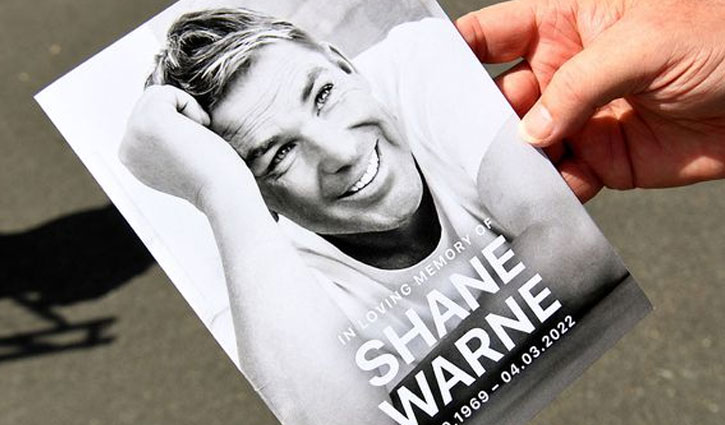 ওয়ার্নের কফিনে বাঁধা ছিল তার প্রিয় ক্লাব সেন্ট কিলডা সেইন্টসের স্কার্ফ। ছেলে জ্যাকসন, ওয়ার্নের ভাই জ্যাসন ও আরো কয়েকজন কাঁধে বহন করছিলেন স্পিন জাদুকরের কফিন।