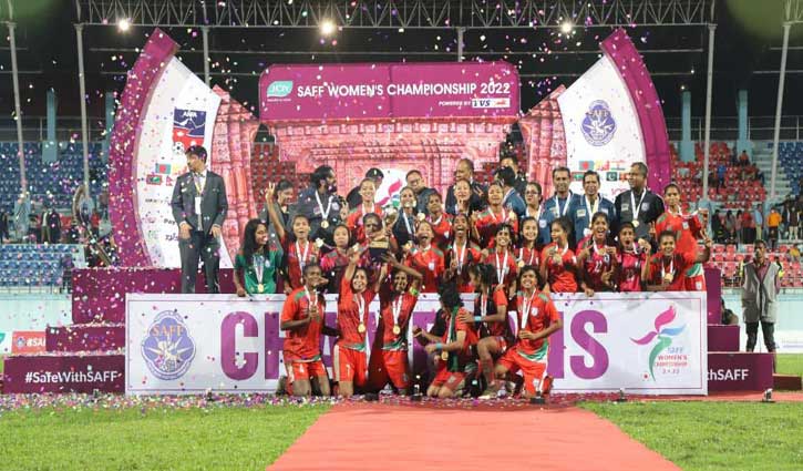 সাফে নারীরা এর আগে একবার ফাইনাল ও তিনবার সেমিফাইনালে উঠেছিল। শিরোপায় চুমু খাওয়া হয়নি। এবার নারীরা শিরোপা খরা কাটিয়েছে নেপালকেই ৩-১ গোলে উড়িয়ে। নারীদের এই অর্জন পুরুষদের দেখানো পথেই হেঁটেছে। ১৯৯৯ সালের ৪ অক্টোবর এই দশরথ স্টেডিয়ামে আলফাজ আহমেদের দেওয়া একমাত্র গোলে নেপালকে হারিয়ে বাংলাদেশ পুরুষ দল প্রথম সাফ ফুটবল জিতেছিল। ২৩ বছর পর নারীরা একই ভেন্যুতে, একই প্রতিপক্ষকে হারিয়ে অমরত্বের স্বীকৃতি পেয়ে গেলেন।