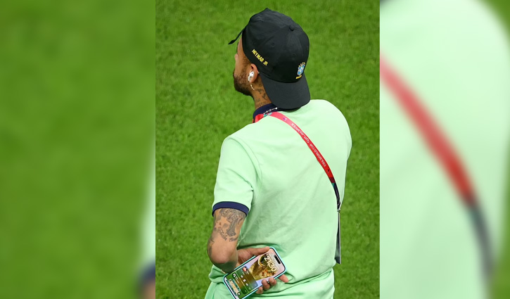 একটি ছবিতে দেখা গেছে, নেইমার সাইডলাইনে তার ফোন নিয়ে দাঁড়িয়ে আছেন। ফোনের ডিসপ্লে স্পষ্ট দেখা যাচ্ছে। ব্যাকগ্রাউন্ডে সোনালি রঙয়ের বিশ্বকাপ ট্রফি। বোঝা যাচ্ছে, মাঠে নিজের সেরাটা দিয়ে ফিরতে এবং দেশকে ষষ্ঠ ট্রফি এনে দিতে কতটা ক্ষুধার্ত ৩০ বছর বয়সী ফরোয়ার্ড।