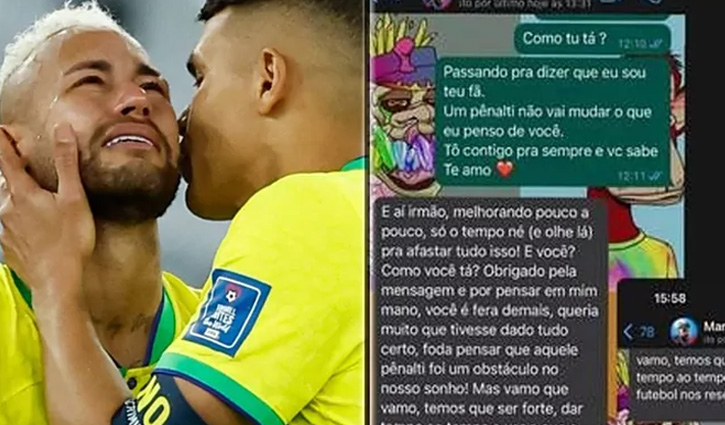 ক্রোয়েশিয়ার বিপক্ষে টাইব্রেকারে ব্রাজিল ৪-২ গোলের ব্যবধানে হারে। ব্রাজিলের হয়ে পেনাল্টি মিস করেন রদ্রিগো এবং মার্কুইনহোস। এ দুজনসহ অভিজ্ঞ ডিফেন্ডার থিয়াগো সিলভার সঙ্গে হোয়াটসঅ্যাপে বার্তা চালাচালি করেন নেইমার। সেটি আবার ফাঁস করলেন সামাজিক যোগাযোগ মাধ্যমে।