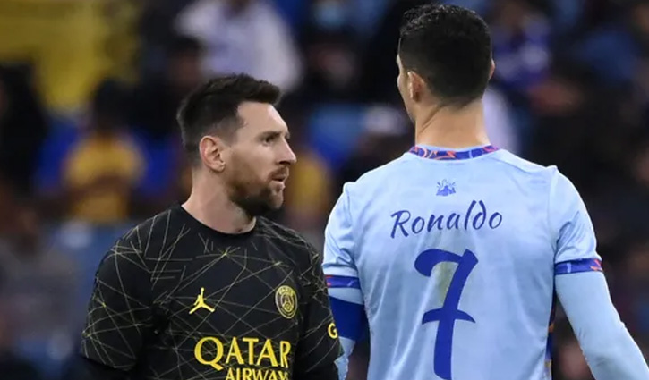 অথচ ২০০৯ সালে রোনালদো রিয়াল মাদ্রিদে যোগ দেওয়ার পর হরহামেশাই দেখা হতো মেসির সঙ্গে। ক্লাব ও আন্তর্জাতিক ফুটবল মিলিয়ে ৩৫ বার মাঠে লড়েছেন তারা। শাসন করেছেন ফুটবল বিশ্বকে। পুরস্কার পাওয়া, রেকর্ড ভাঙা মিউজিক্যাল চেয়ারের মতো অদলবদল করেছেন। সবশেষ রিয়াদে দেখা হয়ে গেলো তাদের। সৌদি আরবের ক্লাব আল নাসের রোনালদোর সঙ্গে চুক্তি করে বিশ্বের সবচেয়ে হাইভোল্টেজ ম্যাচের আয়োজন করে ফেলে। প্রীতি ম্যাচ হলেও আঁচটা বিশ্বকাপ ফুটবলের চেয়ে কোনো অংশে কি কম ছিল?