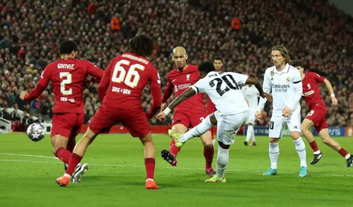 উয়েফা চ্যাম্পিয়নস লিগে শেষ কবে হেরেছিল রিয়াল মাদ্রিদ? সেটা খুঁজতে ধুলো জমা ফাইল ঘাটতে হবে নিশ্চয়ই। ইউরোপিয়ান প্রতিযোগিতায় হারতে ভুলে যাওয়া রিয়াল মাদ্রিদ আরও একবার তাদের প্রমাণ করলো। চ্যাম্পিয়নস লিগের শেষ ষোলোর প্রথম লেগে মঙ্গলবার দিবাগত রাতে অ্যানফিল্ডে লিভারপুলের বিপক্ষে ১৪ মিনিটেই ২-০ গোলে পিছিয়ে পড়েছিল তারা। এরপর লাল উৎসব থামিয়ে ২-৫ ব্যবধানের রোমাঞ্চকর এক জয় তুলে নিয়েছে। এই জয়ে শেষ আটে এক পা দিয়ে রেখেছে বর্তমান চ্যাম্পিয়নরা। কারণ, ফিরতি লেগ যে হবে তাদের ঘরের মাঠে।