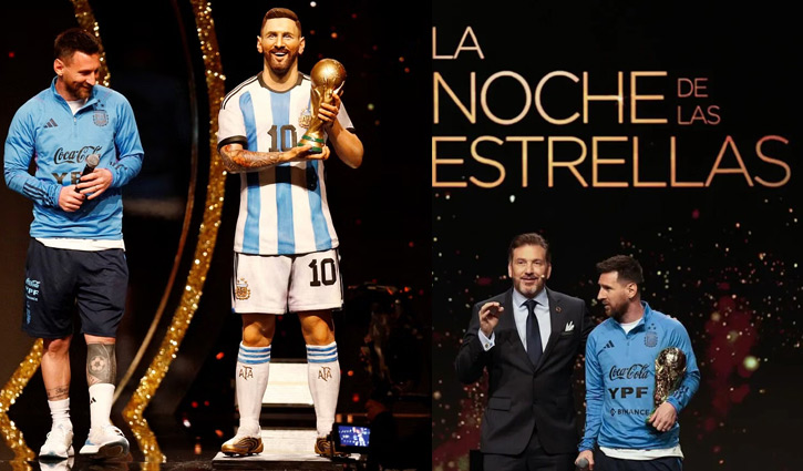 বিশ্বকাপ জয়ী অধিনায়ক লিওনেল মেসির সংবর্ধনা ও সম্মাননা যেন শেষ হচ্ছে না। এই যেমন সোমবারও পেলেন বিরাট সম্মাননা। বিশ্বকাপের ট্রফি হাতে তার একটি ভাস্কর্য তৈরি করেছে দক্ষিণ আমেরিকান ফুটবলের অভিভাবক কনমেবল। সোমবার তার সামনেই সেটির উন্মোচন করা হয়। যেটা রাখা হবে কনমেবলের জাদুঘরে। তাও আবার পেলে ও ম্যারাডোনার মতো কিংবদন্তিদের পাশে।