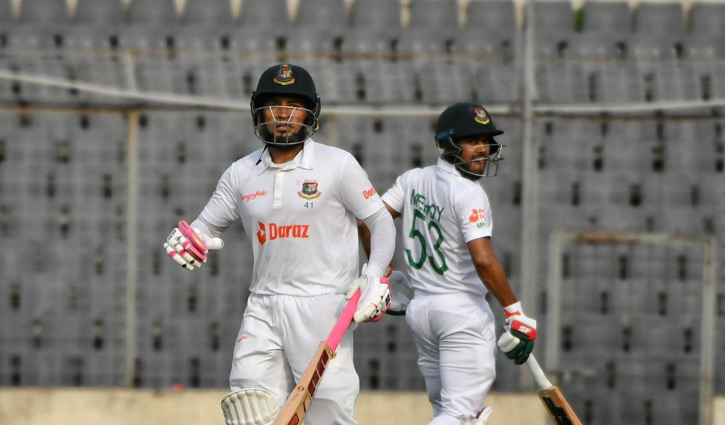 ‘এখন যে অবস্থায় আছি, আমরা প্রথম ইনিংসটা নিয়ে এখন চিন্তা করি। যেভাবে মিরাজ ও মুশফিক ভাই ব্যাটিং করছেন, এই জুটিটা যদি বড় করতে পারি তাহলে আমাদের টিম ভালো অবস্থায় যাবে’-এভাবে বলেছেন শান্ত।