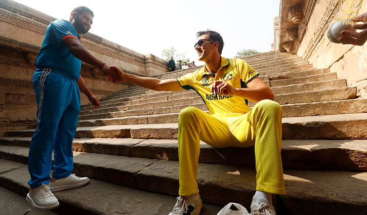 আহমেদাবাদের প্রসিদ্ধ আদালাজ স্টেপওয়েলে দুজনের পথ মিলিয়ে দিয়েছে আইসিসি, অফিসিয়াল ফটোসেশনে। শহর থেকে ত্রিশ মিনিটের দূরত্বে ঐতিহাসিক স্থাপনায় গিয়ে ট্রফি হাতে হাসিমুখে ছবি তুলেছেন ভারত ও অস্ট্রেলিয়ার অধিনায়ক। ম্যাচ বল-ব্যাটে অটোগ্রাফসহ তারা কত কিছু করলেন একসঙ্গে। কিন্তু ময়দানী লড়াইয়ে দুজনের পথ বেঁকে গেছে দু’দিকে।