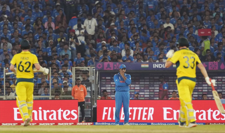 যথাসময়ে এসে ভারতের ব্যাটাররা ব্যর্থ। বিরাট কোহলি-লোকেশ রাহুলের ফিফটিতে কোনো মতে ২৪০ রানে অলআউট হয় ভারত। চলতি বিশ্বকাপের ফাইনালে এসে প্রথম অলআউটের স্বাদ পেলো রোহিত শর্মার দল। রাহুল সর্বোচ্চ ৬৬ রান করেন। কোহলির ব্যাট থেকে আসে ৫৪ রান। শুরুতে রোহিত শর্মা ৪৭ রানের ইনিংস খেলে ঝড়ো শুরুর আভাস দিলেও সমানতালে লড়তে পারেননি ব্যাটাররা। শেষ দিকে হতাশ করেছেন রবীন্দ্র জাদেজা (৯) ও সুরিয়া কুমার যাদব (১৮)। অজিদের হয়ে দারুণ বোলিং করেছেন মিচেল স্টার্ক ও অধিনায়ক প্যাট কামিন্স। স্টার্ক সর্বোচ্চ ৩ উইকেট নেন আর কামিন্স ১০ ওভারে মাত্র ৩৪ রান দিয়ে নেন ২ উইকেট।