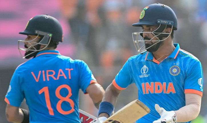 অ্যাডাম জাম্পাকে লং অনে খেলে সিঙ্গেল নেন বিরাট কোহলি। ৫৬ বলে কোহলি দেখা পান ওয়ানডে ক্যারিয়ারের ৭২ তম ফিফটির। রাহুলের সঙ্গে জুটি গড়ে কোহলির ফিফটিতে কিছুটা স্বস্তিতে ভারত। টানা দুই বিশ্বকাপে টানা পাঁচটি ইনিংসে একমাত্র ব্যাটার হিসেবে পঞ্চাশের বেশি রানের কীর্তি গড়েন কোহলি। রোহিতের পর শ্রেয়স আইয়্যার মাঠে এসেই ফেরায় বিপাকে পড়েছিল দলটি। কোহলি-রাহুল ঠাণ্ডা মেজাজে এগোচ্ছেন, দুজনের জুটি ইতিমধ্যে ফিফটি ছড়িয়ে যায়।