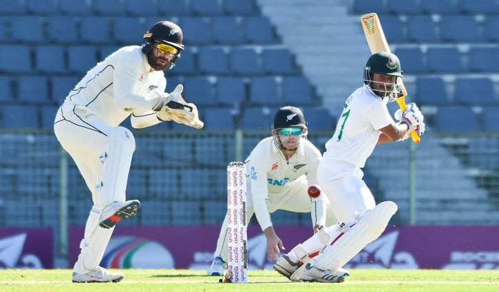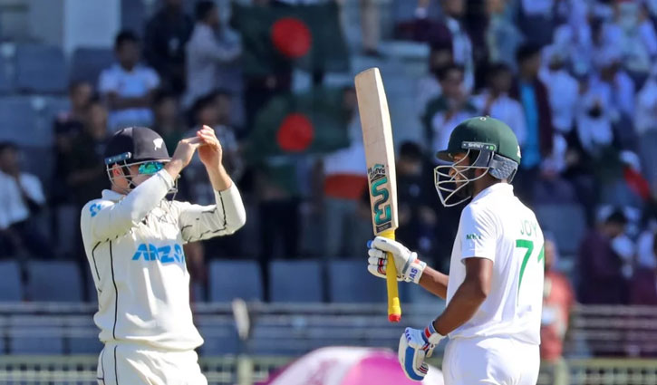 নাজমুল হোসেন শান্তর বিদায়ের পর ভালোই খেলছিলেন মাহমুদুল হাসান জয় ও মুমিনুল হক। দুজন মিলে পঞ্চাশ রানের জুটিও গড়েন। তাদের ব্যাটে দেড়শ পার করে বাংলাদেশ। কিন্তু গ্লেন ফিলিপসের ফাঁদটা বুঝেও স্বেচ্ছায় ধরা দিলেন মুমিনুল।