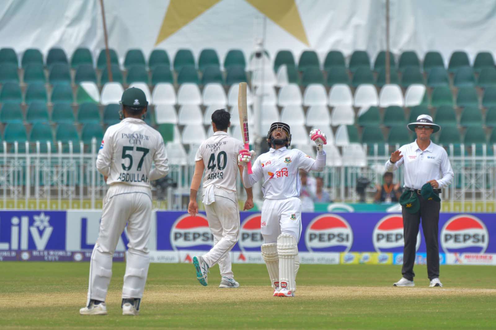 আগের দিন শেষ সেশনে জাকিরের কাউন্টার অ্যাটাকে মাত্র ৭ ওভারে ৪২ রান তুলে নিয়েছিল বাংলাদেশ। কিন্তু প্রথমে আলোকস্বল্পতা, পরে বৃষ্টি; দুইয়ে মিলিয়ে ওপেনারদের ছন্দ নষ্ট করে। পঞ্চম দিনের সকালের সেশনে দুই ওপেনারের বিদায়ে পাকিস্তান কিছুটা আশার আলো দেখতে শুরু করে। কিন্তু শান্ত ও মুমিনুলের পঞ্চাশ পেরোনো জুটিতে স্বাগতিকদের সব আশা শেষ হয়ে যায়। দুই ব্যাটসম্যান অবশ্য জয় নিয়ে ফিরতে পারেননি। উইকেট উপহার দিয়েছেন প্রতিপক্ষকে।