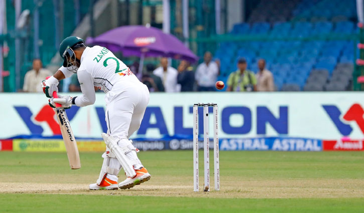 চেন্নাইয়ে আক্রমণাত্মক মেজাজে খেলছিলেন জাকির হাসান। কানপুরে দেখা গেল তার উল্টো রূপ। শুরু থেকেই টেস্ট মেজাজে খেলে যাচ্ছিলেন বাংলাদেশী ওপেনার। তবে তার অতিরিক্ত ডিফেন্সিভ হতে গিয়ে ডেকে আনলেন বিপদ। আকাশ দীপের বলে কোনো রান না করেই ফিরে গেছেন জাকির।