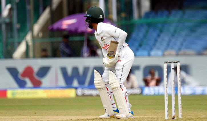 বল শান্তর প্যাডে আঘাত করলে আঙ্গুল তুলে দেন আম্পায়ার। রিভিউ নিয়েছিলেন শান্ত। কিন্তু তৃতীয় আম্পায়ারও আউট ঘোষণা করেন। ৫৭ বলে ৩১ রান করে আউট হলেন নাজমুল। এর মধ্য দিয়ে মুমিনুলের সঙ্গে তাঁর ৫১ রানের জুটিও ভাঙল। ক্রিজে মুমিনুলের নতুন সঙ্গী মুশফিকুর রহিম।