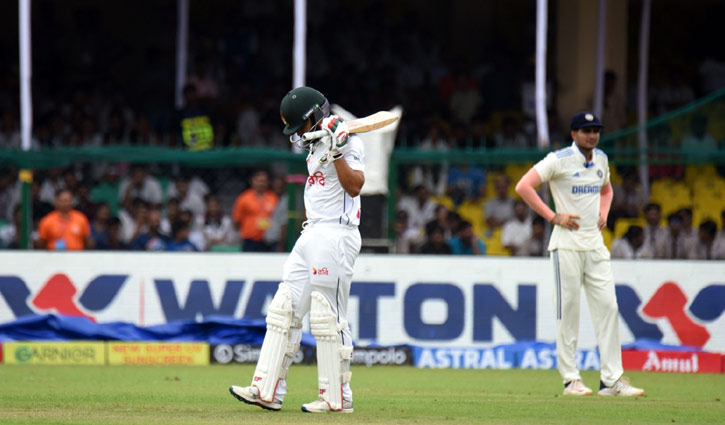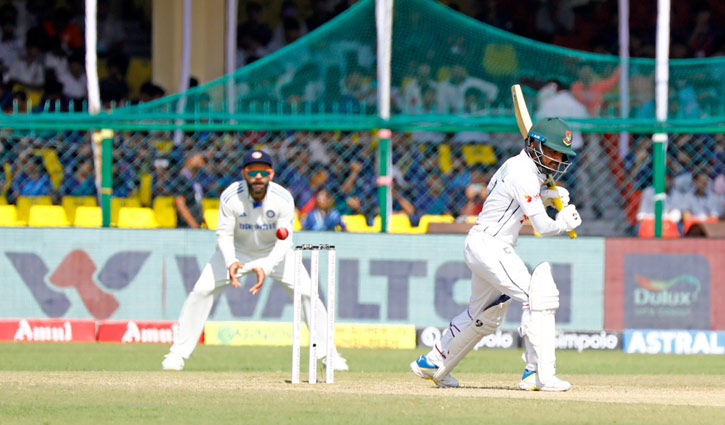 গ্রিনপার্কের সবুজ গলিচায় ফুল ফুটিয়ে ফোকাস কেড়ে নিয়েছিলেন মুমিনুল হক। তবে ভারতীয় ব্যাটারদের বিধ্বংসী ব্যাটিংয়ে মুমিনুলের ছন্দময় ব্যাটিং বেলা গড়াতে গড়াতে চাপা পড়ে যায়। দিনশেষে আবারও ব্যাটিংয়ে নামতে হয় তাকে! ক্রিকেটের অভিজাত সংস্করণ টেস্টে রেকর্ডগড়া রানরেটে ব্যাটিং করে ভারতের চোখ জয়ের দিকে, তাতে যেন এলোমেলো লাল-সবুজের প্রতিনিধিরা।