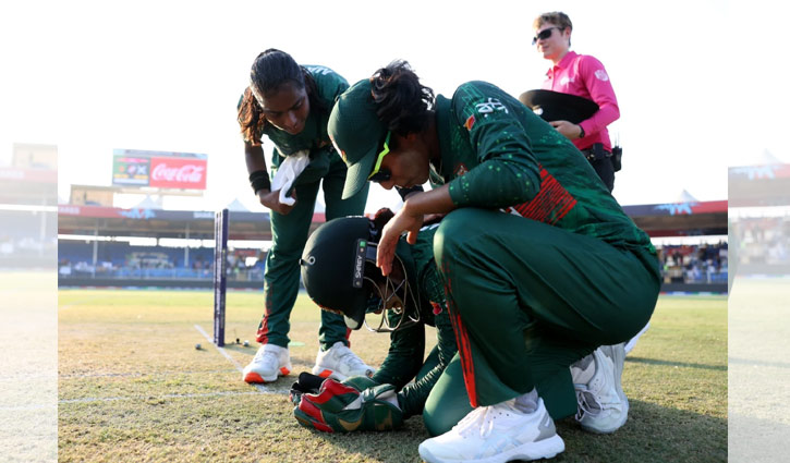 নতুন ব্যাটার তাজ নেহার কোনো রান না করেই রান আউট হয়ে সাজঘরে ফেরেন। ৮৬ রানের মাথায় সোবহানা মোস্তারিও বিদায় নেন। ৩৮ বলে ২ চারে সর্বোচ্চ ৩৬ রান করেন তিনি। ১০০ রানে যাওয়ার আগেই বাংলাদেশ হারায় ৫ উইকেট। ৯৭ রানের মাথায় শর্না আক্তার আউট হন ব্যক্তিগত ৫ রানে। ১০৩ রানের সময় রিতু মনিও ৫ রান করে ফেরেন। জ্যোতি মেরে খেললেও শেষ ওভারে আউট হন ১৮ বলে ১৮ করে। ফাহিমা খাতুন অপরাজিত থাকেন ২ চারে ১০ রানে। তাতে বাংলাদেশের রান ১১৯ পর্যন্ত যায়।