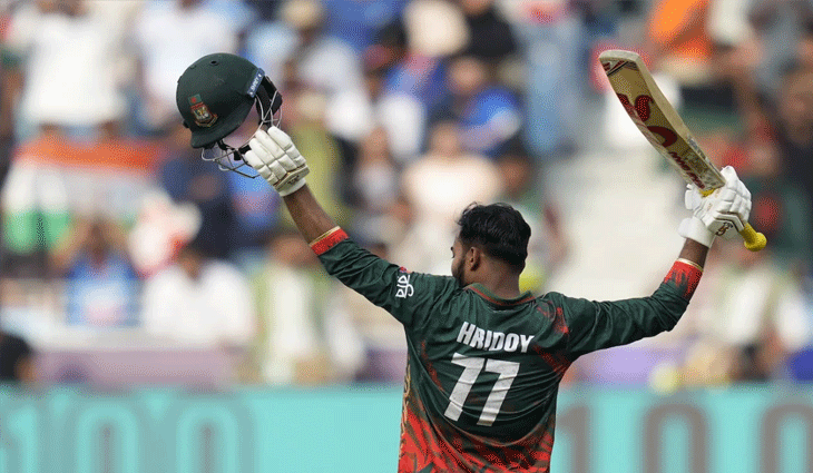 ৩৫ রানে ৫ উইকেটের পতনের পর জাকের আলীকে নিয়ে ষষ্ঠ উইকেটে ১৫৪ রানের রেকর্ড জুটি। জাকের ফিরলেও শেষ ব্যাটার হিসেবে ক্রিজ ছাড়েন তাওহীদ। পঞ্চম বাংলাদেশি হিসেবে চ্যাম্পিয়ন্স ট্রফিতে সেঞ্চুরির দেখা পান তিনি। যেটি তার ওয়ানডে ক্যারিয়ারেরও প্রথম।