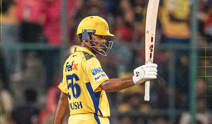 রান তাড়ায় ১৭ বছরের কিশোর আয়ুশ মাত্রের ৪৮ বলে ৯৪ রানের ইনিংস আর রবীন্দ্র জাদেজার সঙ্গে তার ৬৪ বলে ১১৪ রানের জুটি পথে রাখে চেন্নাইকে। তবে সপ্তদশ ওভারে আয়ুশ ও ডেওয়াল্ড ব্রেভিসকে টানা দুই বলে ফেরান লুঙ্গি এনগিডি। তখন ক্রিজে যান ধোনি।