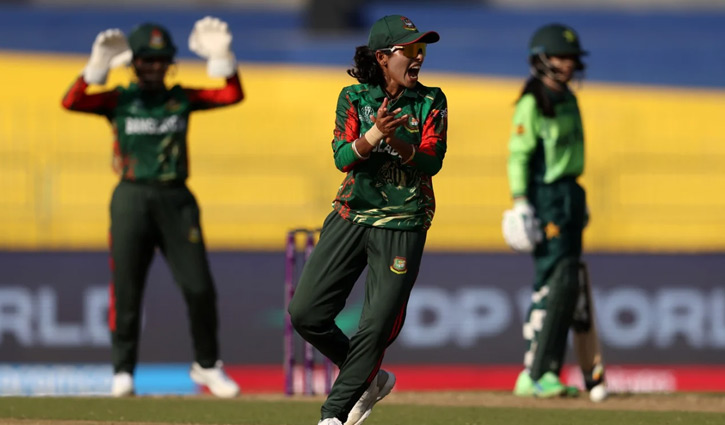 কিন্তু অধিনায়ক নিগার সুলতানা জ্যোতি নেমে ব্যাট হাতে যেন আলো জ্বালালেন। তার আত্মবিশ্বাসী শটে ঘুচে গেল চাপ, ছন্দ ফিরে পেল বাংলাদেশ। যদিও তিনি ২৩ রানের বেশি করতে পারেননি, তবে দলের ভিত গড়ে দিয়েছিলেন। এরপরই আসল ঝলক দেখালেন উদ্বোধনী ব্যাটার রুবিয়া হায়দার ঝিলিক। নামের মতোই ঝলমলে ইনিংস খেললেন তিনি। ৭৭ বলের মায়াবী ব্যাটিংয়ে ৮ চার মেরে গড়লেন অপরাজিত ৫৪ রানের দৃষ্টিনন্দন ইনিংস। তার সঙ্গী সোবহানা মোস্তারিও ছিলেন দৃঢ়তায় ভরপুর। ১৯ বলে ৬ চারে ২৪ রানে সঙ্গ দিলেন শেষ পর্যন্ত। দুজনের অবিচ্ছিন্ন জুটিতেই ৩১.১ ওভারে জয়ের নোঙর ফেলে বাংলাদেশ।