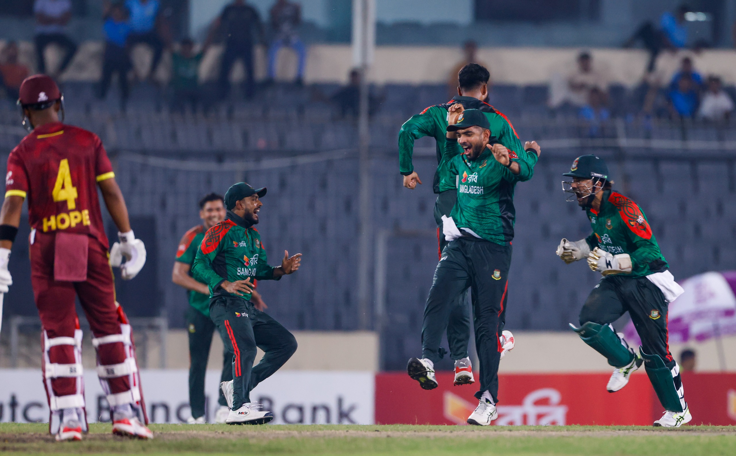 আগের দিনই তাদের কোচ ড্যারেন স্যামি উইকেট নিয়ে এমন আভাস দিয়েছিলেন, ‘‘এমন কিছু কখনো দেখেননি।’’ তার বিস্ময় প্রকাশ করা উইকেটে রিশাদ হোসেনের ঘূর্ণিতে বাংলাদেশ জয়ের ছবি আঁকল। ৩৫ রানে ৬ উইকেট নিয়ে বাংলাদেশের জয়ের নায়ক তিনি। প্রথমবার বাংলাদেশের কোনো স্পিনার ওয়ানডেতে পেলেন ৬ উইকেট।