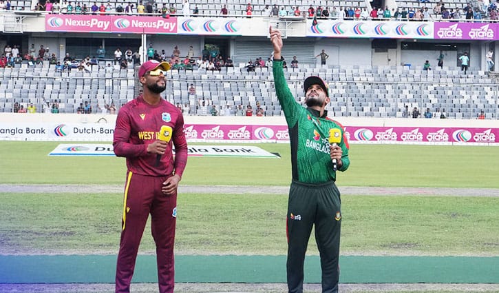 ওয়েস্ট ইন্ডিজের বিপক্ষে তিন ম্যাচ ওয়ানডে সিরিজের দ্বিতীয়টিতে আজ মঙ্গলবার (২১ অক্টোবর) মাঠে নেমেছে বাংলাদেশ। মিরপুর শের-ই বাংলা জাতীয় ক্রিকেট স্টেডিয়ামে টস জিতেছেন বাংলাদেশের অধিনায়ক মেহেদী হাসান মিরাজ। তিনি অবশ্য ব্যাটিং করার সিদ্ধান্ত নিয়েছেন। স্বাগতিকরা আজ চারজন স্পিনার ও একজন পেসার নিয়ে একাদশ সাজিয়েছে। একাদশে এনেছে একটি পরিবর্তন। অন্যদিকে ওয়েস্ট ইন্ডিজ তাদের একাদশে দুটি পরিবর্তন এনেছে।