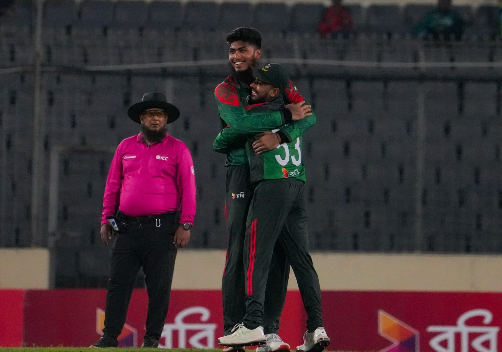অতিথিদের এমন বোলিং আক্রমণের একমাত্র কারণ মিরপুরের উইকেট। যেখানে বল এদিক-ওদিক ছোবল দিল। চিরায়িত উচুঁ-নিচু বাউন্স হয়নি অবশ্য। বাংলাদেশের বোলিংয়েও একই চিত্র। চার স্পিনার নিয়ে একাদশ সাজানো বাংলাদেশের একমাত্র পেসার মোস্তাফিজুর রহমান। মিরাজ অবশ্য তাকে দিয়ে ৮ ওভার বোলিং করিয়েছেন। দুই পক্ষের স্পিনারদের মধ্যকার লড়াইয়ে ফলাফল নির্ধারণে চরম নাটকীয়তা হয়েছে।
