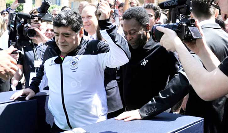 সাংবাদিকদের কবলে দুই কিংবদন্তি পেলে ও ম্যারাডোনা