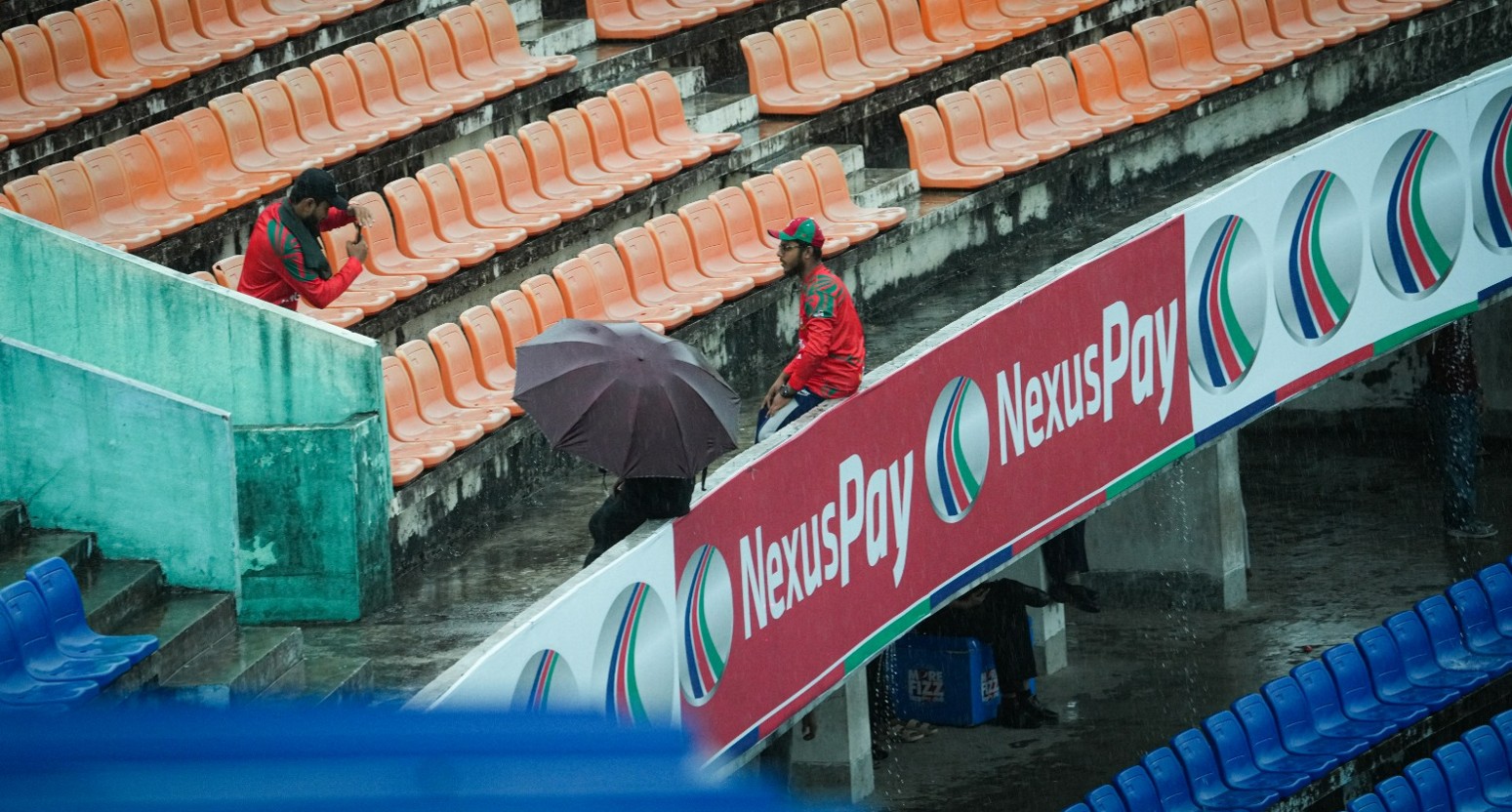 বুধবার সকাল থেকেই আকাশজুড়ে ঘন মেঘের আনাগোনা, তার সঙ্গে টুপটাপ বৃষ্টির ছন্দ। সব মিলিয়ে থমকে গেল নির্ধারিত উত্তেজনা। তবে খেলা না হলেও থেমে থাকেনি প্রাণচাঞ্চল্য। গ্যালারি আর আশপাশজুড়ে দর্শক-সমর্থকদের হাসি, গল্প আর আড্ডায় মুখর হয়ে উঠেছিল পুরো পরিবেশ।