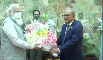জাতির পিতা বঙ্গবন্ধু শেখ মুজিবুর রহমানের জন্মশতবার্ষিকী ও বাংলাদেশের স্বাধীনতার সুবর্ণজয়ন্তী অনুষ্ঠানে যোগ দিতে ঢাকা এসেছেন ভারতের প্রধানমন্ত্রী নরেন্দ্র মোদি। শুক্রবার (২৬ মার্চ) সকাল সাড়ে ১০টায় হযরত শাহজালাল আন্তর্জাতিক বিমানবন্দরে পৌঁছান তিনি। তাকে অভ্যর্থনা জানান প্রধানমন্ত্রী শেখ হাসিনা। মোদিকে লালগালিচা সংবর্ধনা এবং গার্ড অব অনার প্রদান করা হয়।