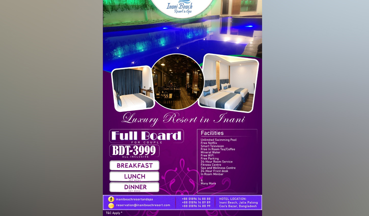 প্যাকেজ অথবা রুম বুক করতে কল করুন: 01896-148888, 01896-148989, 01896-148899