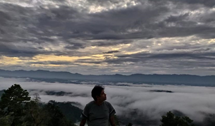 ভোরের আভায় রিসোর্টে একান্ত মনে লেখক উপভোগ করছেন প্রকৃতির অপার সৌন্দর্য