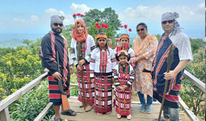 লুসাই পাড়ায় উপজাতিদের পোশাকে সজ্জিত ওরা কয়েকজন