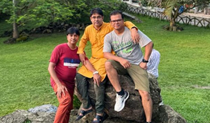 রক গার্ডেনের পাথরে বসে সহকর্মী রানা ও তুষার কান্তির সঙ্গে