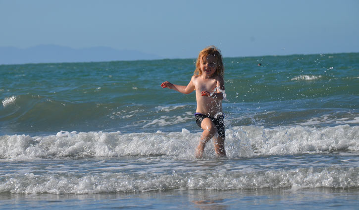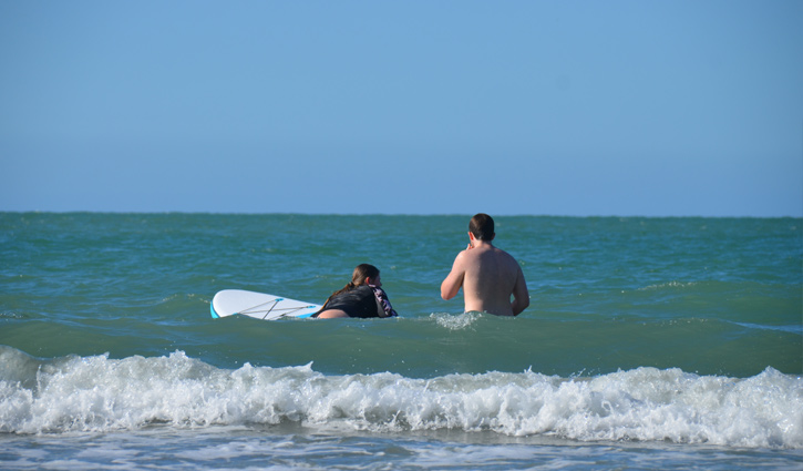 আমি হাঁটছি, দেখছি চারদিক। রুদ্রকে দিয়ে নিজের ছবি তোলালাম। ক্ষুধা আমারও আছে বৈকি! অনেকগুলো ছবি নিজের ক্যামেরায় তুললাম স্মৃতিগুলো ধরে রাখতে। পরিষ্কার-পরিচ্ছন্ন সৈকতটি একেবারে ছোট না। কিন্তু সেই তুলনায় লোকজন অনেক কম। একটু পরপর তাসমান সাগরের বড় বড় ঢেউ আছড়ে পড়ছে তীরে। নীল জলের ফেনিল সফেদ ঢেউ এসে লুটিয়ে পড়ছে পায়ের কাছে। শতশত সি-গাল ওড়াউড়ি করছে। ডাকাডাকি করে যাচ্ছে বিরতিহীন। পাঁচ-ছয় বছর বয়সী বাচ্চারা মা–বাবা ছাড়াই পানিতে নেমে যাচ্ছে, আবার দৌঁড়ে উঠে আসছে। কোনোরকম ভয় এদের মধ্যে কাজ করছে না। ওদের কাছে সাগর বা পানি ভয়ের কিছু না; খেলার জায়গা, বেঁচে থাকার জায়গা। গভীর সমুদ্রে একটি ছেলে একটি মেয়ে সার্ফিং করছে। মূলত অনুশীলন করছে ওরা। ভাই-বোন হতে পারে। অন্তত চেহারা তাই বলে। কিন্তু এরকম ভারি শরীর নিয়ে মেয়েটি কীভাবে সার্ফিং অনুশীলন করছে বোধগম্য হলো না। শখ হতে পারে।