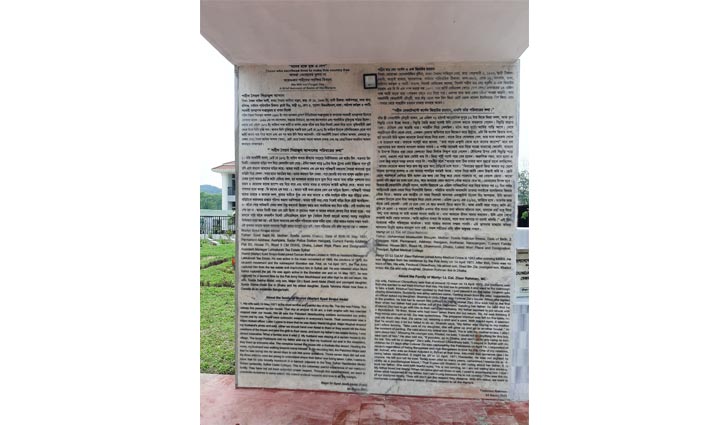 দেখা হলো এ প্রকল্পের গবেষকদলের প্রধান মুক্তিযুদ্ধ গবেষক অপূর্ব শর্মা। তিনি জানালেন, ১৯৭১ সালে সালুটিকরে ক্যাম্প গড়েছিল পাকিস্তানি সেনাবাহিনী। মুক্তিযোদ্ধাসহ বাঙালিদের ধরে এনে হত্যা ও নির্যাতন করা হতো এখানে। হত্যার পর ক্যাডেট কলেজের পেছনেই গণকবর দেওয়া হয় তাদের। এখানে অন্তত ২০০ বাঙালিকে গণকবর দেওয়া হয় বলে ধারণা করা হয়। তিনি আরো জানালেন, দীর্ঘদিন থেকে এ গণকবর নিয়ে গবেষণার পর শহীদ ৬৬ জনের পরিচয় শনাক্ত করা হয়েছে। সালুটিকরের এই গণকবর সবার কাছে ‘বধ্যভূমি’ হিসেবে পরিচিত থাকলেও এত দিন এটি পড়েছিল পরিত্যক্ত অবস্থায়। ঘন জঙ্গলে পূর্ণ ছিল এই টিলাভূমি। ছিল না কোনো স্মৃতিচিহ্ন। স্বাধীনতার ৫২ বছর পর বধ্যভূমি সংরক্ষণের উদ্যোগ নেওয়া হয়। শহীদ স্মৃতি উদ্যানের বিশাল চত্বরে নির্মাণ করা হয়েছে দুটি স্মৃতিস্তম্ভ। একটি স্তম্ভে রয়েছে এখানে শায়িত সব শহীদের নাম। এছাড়া সব শহীদের নামখচিত আলাদা স্মৃতিফলকও রাখা হয়েছে। পুরো চত্বরের বিভিন্ন স্থানে এই উদ্যান নির্মাণের পটভূমির সঙ্গে শায়িত সব শহীদের জীবনী লেখা রয়েছে। আমি বীর শহীদদের জীবনীগাথা পড়ে নিজেকে সমৃদ্ধ করার চেষ্টা করলাম।