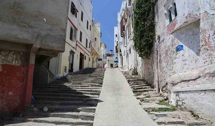 আমার গাড়িটি আসলে তাঞ্জিয়ারের পুরনো শহরের প্রবেশ দ্বারে এসে দাঁড়িয়েছে।পুরনো শহরকে এরা বলে ‘মেদিনা’। শহরটি উঁচু দেয়াল দিয়ে ঘেরা। সেখান থেকে হেঁটে ইবনে বতুতা সড়কে যেতে হবে। গাইড নিয়েও যাওয়া যায়। কিন্তু নিজেই যাবো বলে সিদ্ধান্ত নিলাম। কেবলি এসেছি এই শহরে। একটু বোঝা দরকার শহরটিকে। গুগল ম্যাপ আর পথচারীরাই আমাকে পথ দেখালো। বেশ সরু একটি গলিতে প্রবেশ করলাম। চারদিকে দোকান, রেস্তরাঁ আর হোটেল। ভ্রমণরচনায় পড়েছি টিলার উপরে তাকে সমাহিত করা হয়েছিল। উঁচু-নিচু পথ দেখে অনুমান করতে পারছি টিলা কেটে পথ তৈরি হয়েছে। পথে যাকে জিজ্ঞাসা করছি, সে বলছে কিছুটা সামনে। অবশেষে এসে পৌঁছলাম একটি মসজিদের সামনে। মসজিদে প্রবেশের আগে দেয়ালের গায়ে ইবনে বতুতার নাম লেখা। সাদা আলখেল্লা পরিহিত একজন এসে আরবিতে কি যেন বললেন। আমি বোকার মতো তাকিয়ে থাকলাম। তারপর ভদ্রলোক নিজেই বললেন ‘নো এরাবিক, ইংলিশ! ইংলিশ!’